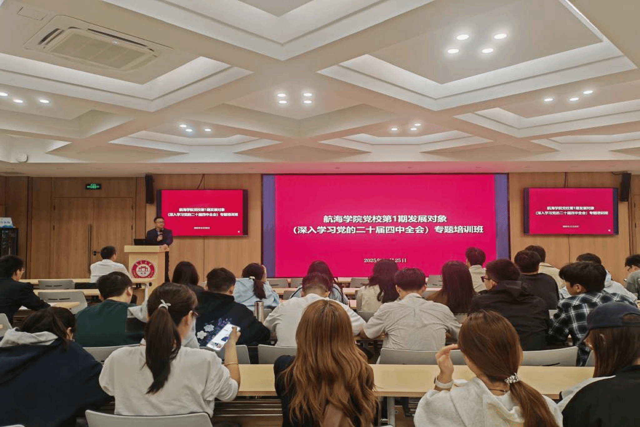 随后,王小军书记以《以全会精神领航 用青春担当向海——航海学子的时代使命》为题讲授专题党课。他要求学员深入学习领会党的二十届四中全会精神,深刻把握航海学子在建设海洋强国战略中的责任与使命,将个人理想融入国家发展大局。学员们纷纷表示将以此次培训为新的起点,锤炼党性修养,争取早日成为一名合格的共产党员。