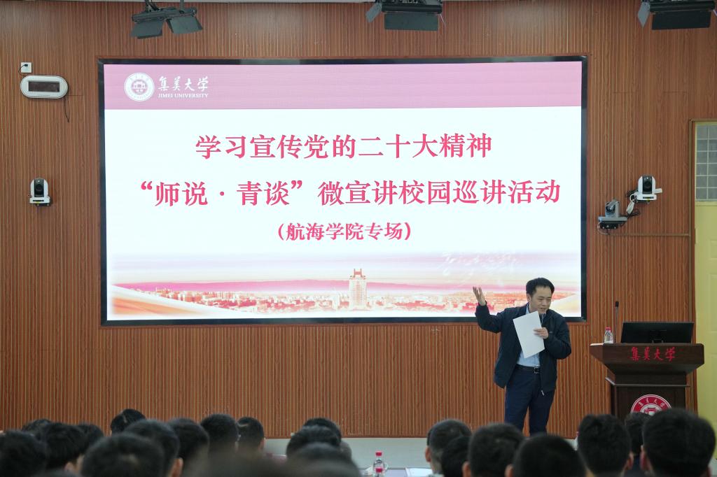 宣讲以深入学习党的二十大精神为主题,马克思主义学院常务副院长张劲松教授、理学院团委书记杨敏副教授以及学生代表等担任主讲人。报告紧扣时代脉搏,走进青年群体,通过更接地气、更有朝气的讲解和生动鲜活的故事,引导激励广大师生主动投身新时代交通强国、海洋强国的建设。