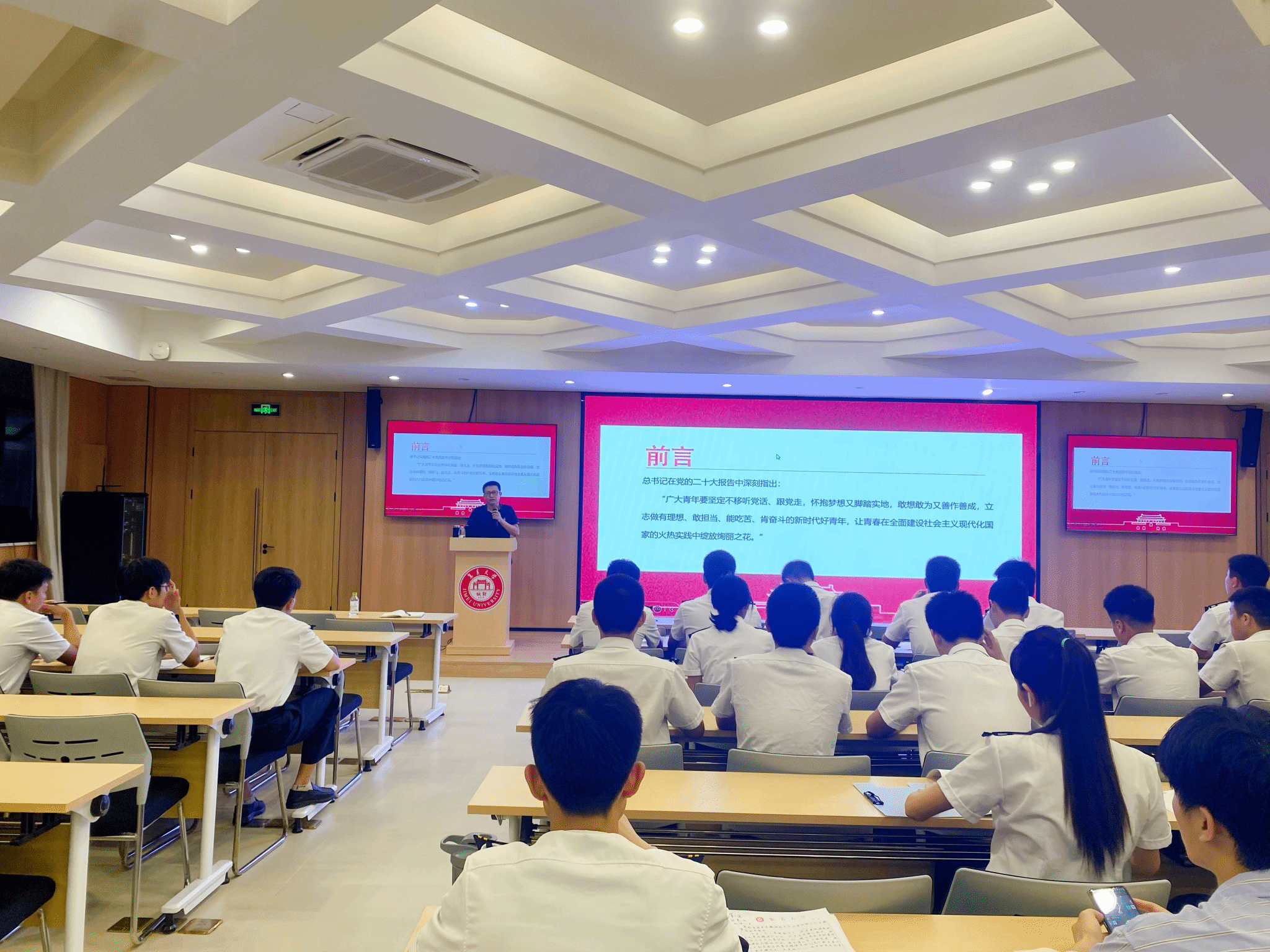 6月3日晚,为加强新时代廉洁文化建设,深入推进全面从严治党、党风廉政建设,引导毕业班党员扣好廉洁从业“第一粒扣子”、端正大学生入党动机,航海学院纪委书记蓝良纯为毕业班党员、入党积极分子、全体辅导员上题为《学条例 守党纪》主题党课。