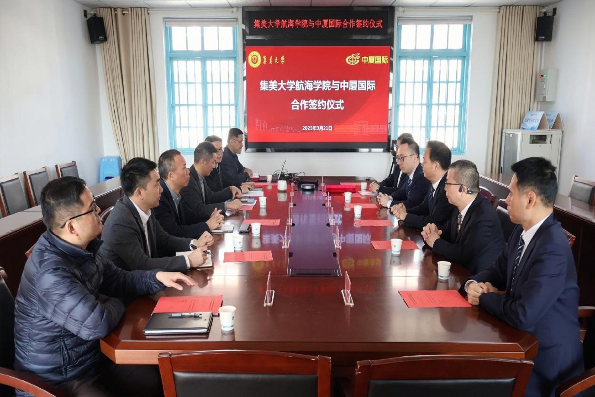 为积极响应国家“海洋强国”战略号召,进一步拓展海事合作领域,推动海事技术业务的创新发展,3月21日,我院与中国厦门国际经济技术合作有限公司举行了校企合作仪式。院党委书记王小军、院长杨神化、党委副书记蓝良纯、副院长徐良坤、中厦国际董事长黄跃德、总经理邬龙峡等出席了仪式。