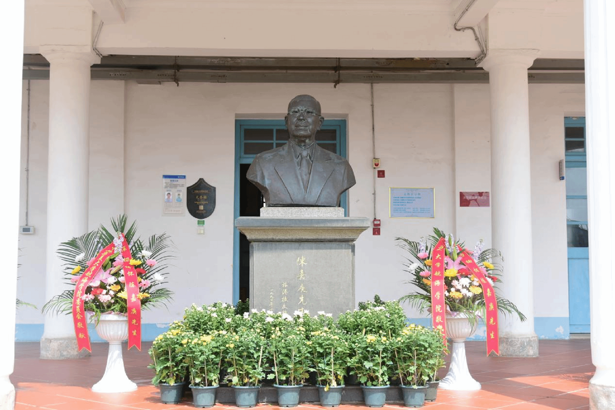 蓝良纯回顾了校主陈嘉庚先生的光辉事迹,师生代表向陈嘉庚先生雕像敬献花篮。全体人员肃立默哀,表达对校主的崇高敬意与深切追思。