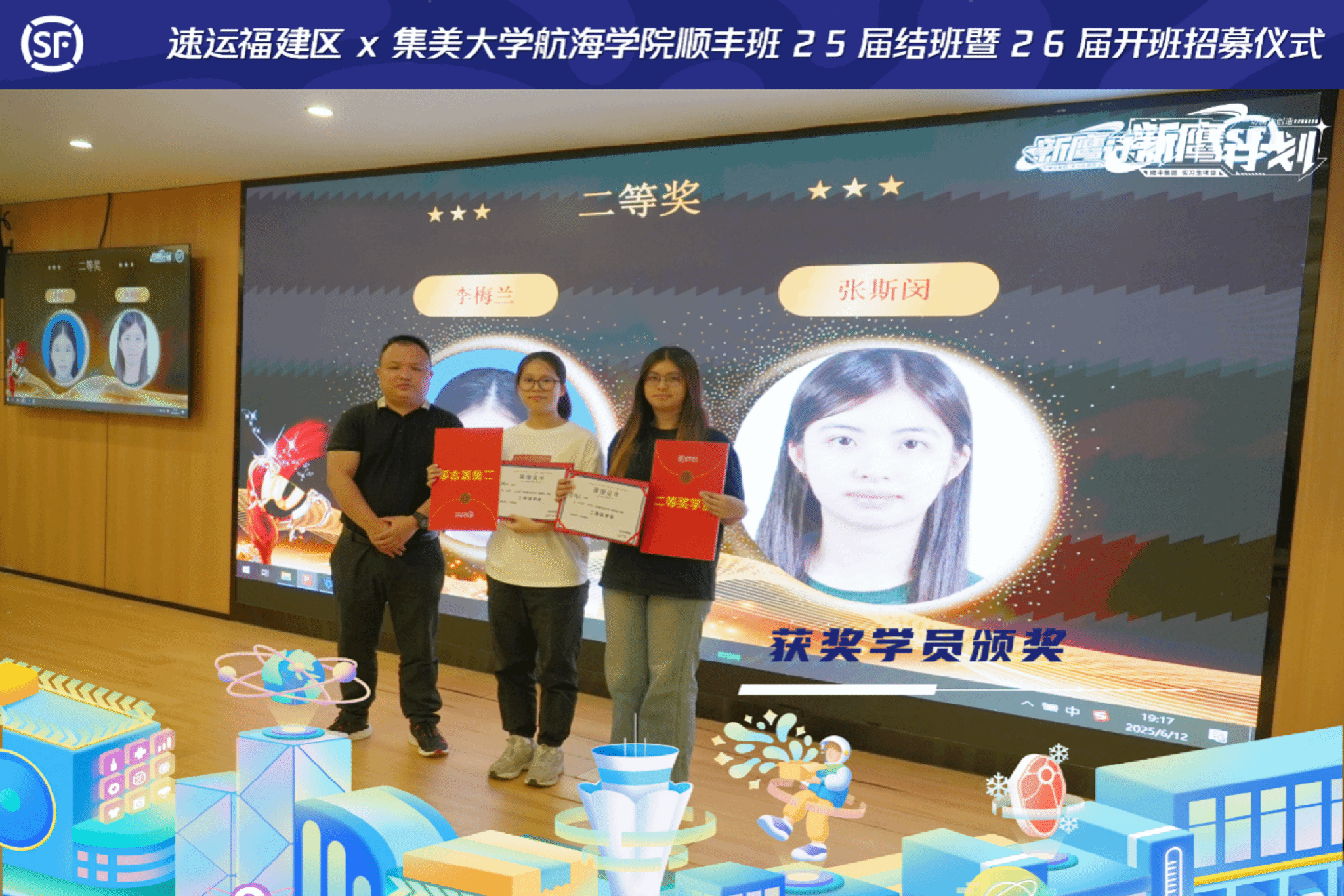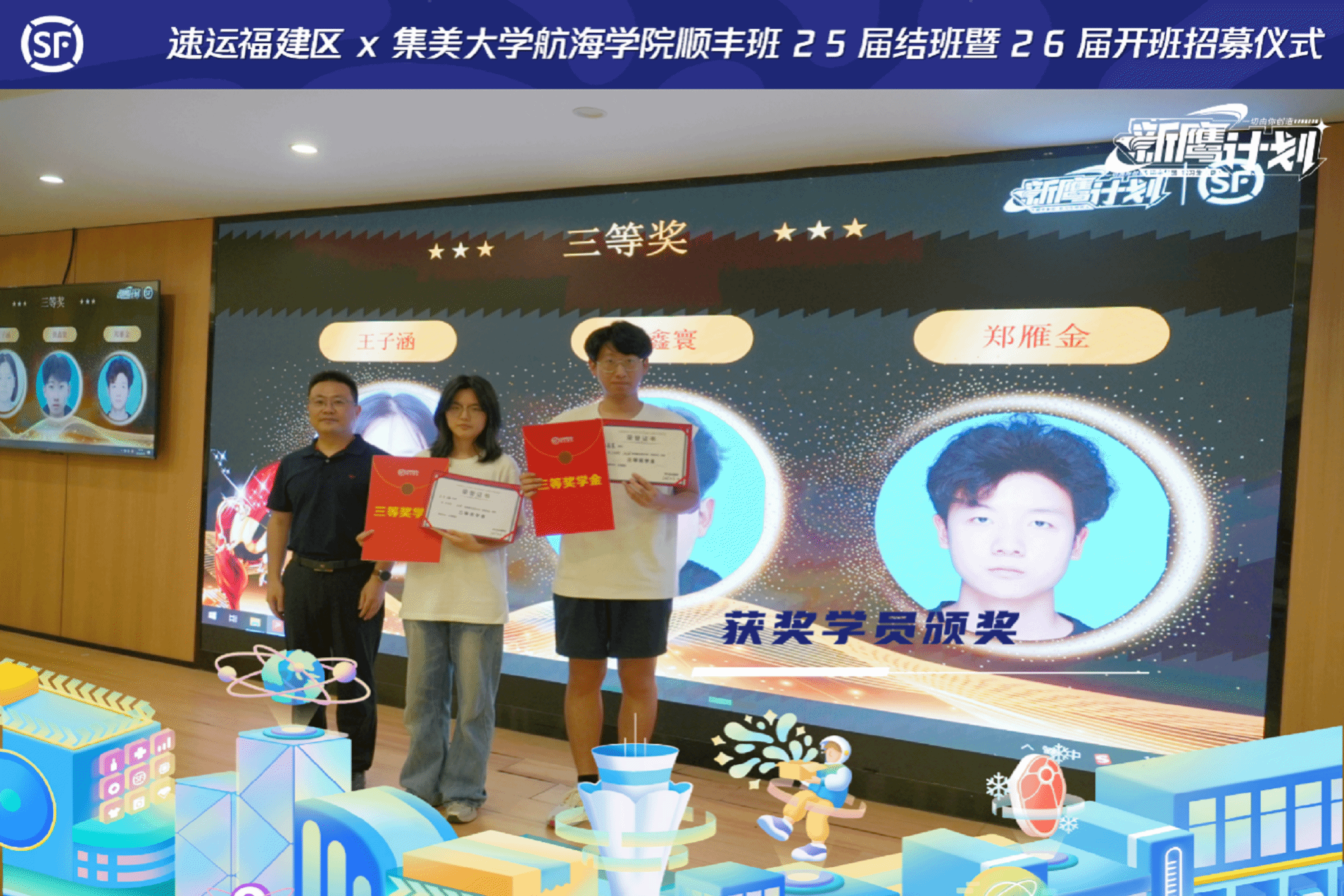 会上,初良勇副院长介绍了该人才培养模式的优势亮点及所取得的成果;顺丰速运集美片区负责人李诚充分肯定了“顺丰班”同学们的表现并提出了建议、希望。与会领导、嘉宾为陈子洋、李梅兰、张斯闽、张鑫寰、王子涵、郑雁金等优异表现的25届顺丰班学员颁发了奖学金,获奖学员代表还分享了经验和心得。