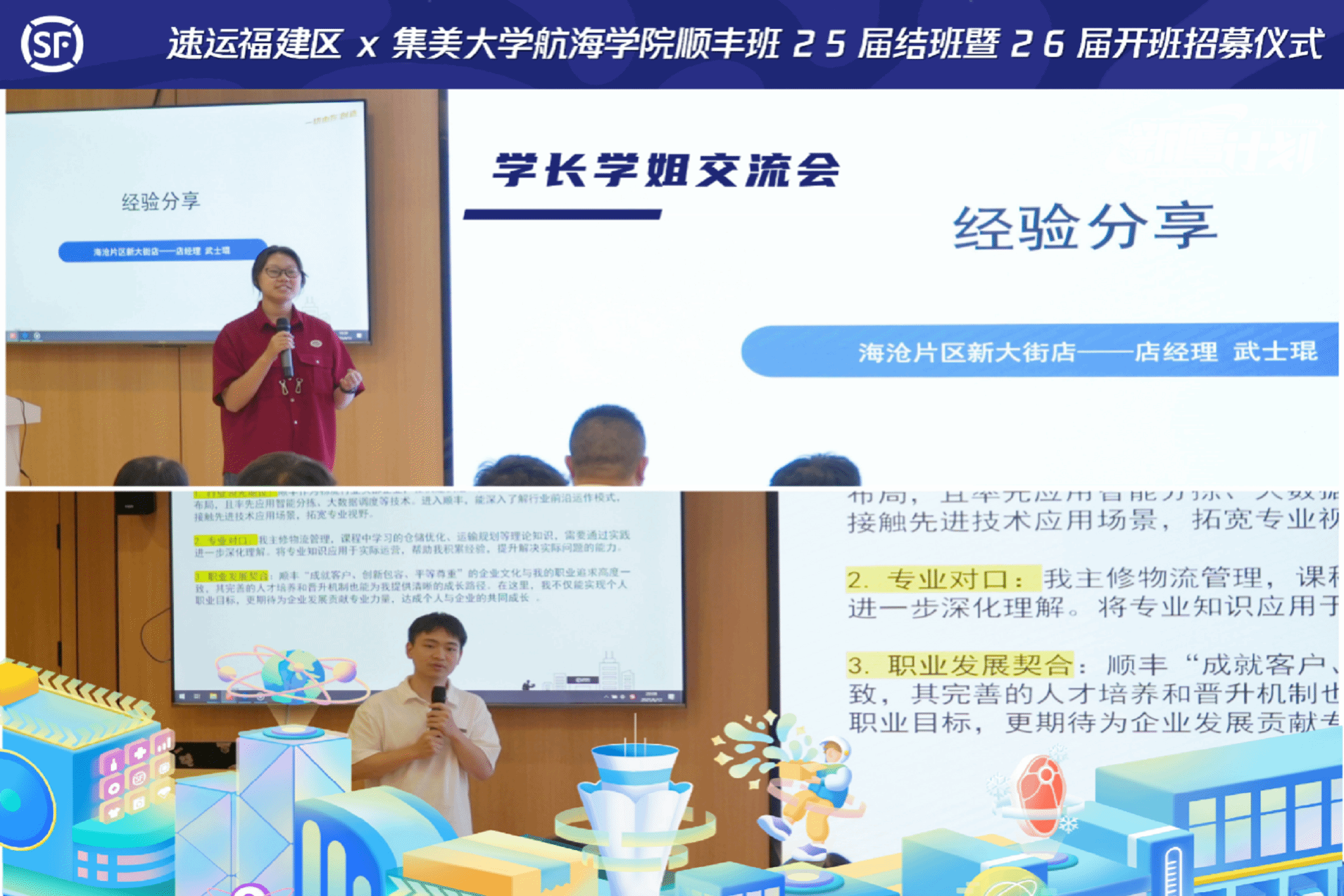据悉,顺丰班自2021年起已成功招募5届学生,该项目以“前置培养-闯关升级”为核心模式,学员在顺丰体系内经历多个业务环节的历练,多名学生已经发展成为企业独当一面的经营管理者。双方未来将持续深化产教融合,“顺丰班”将持续助力学生成长提速,共创学生高质量就业。