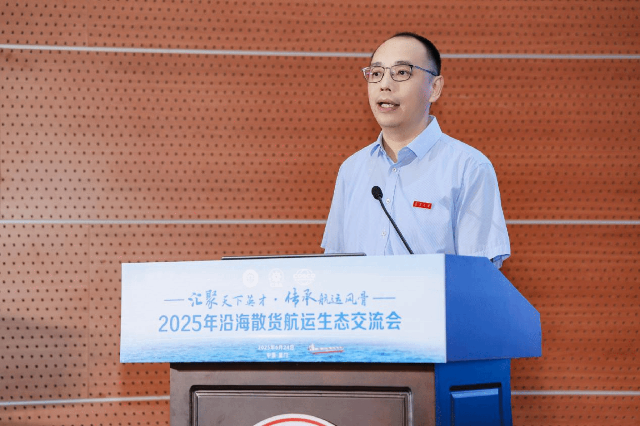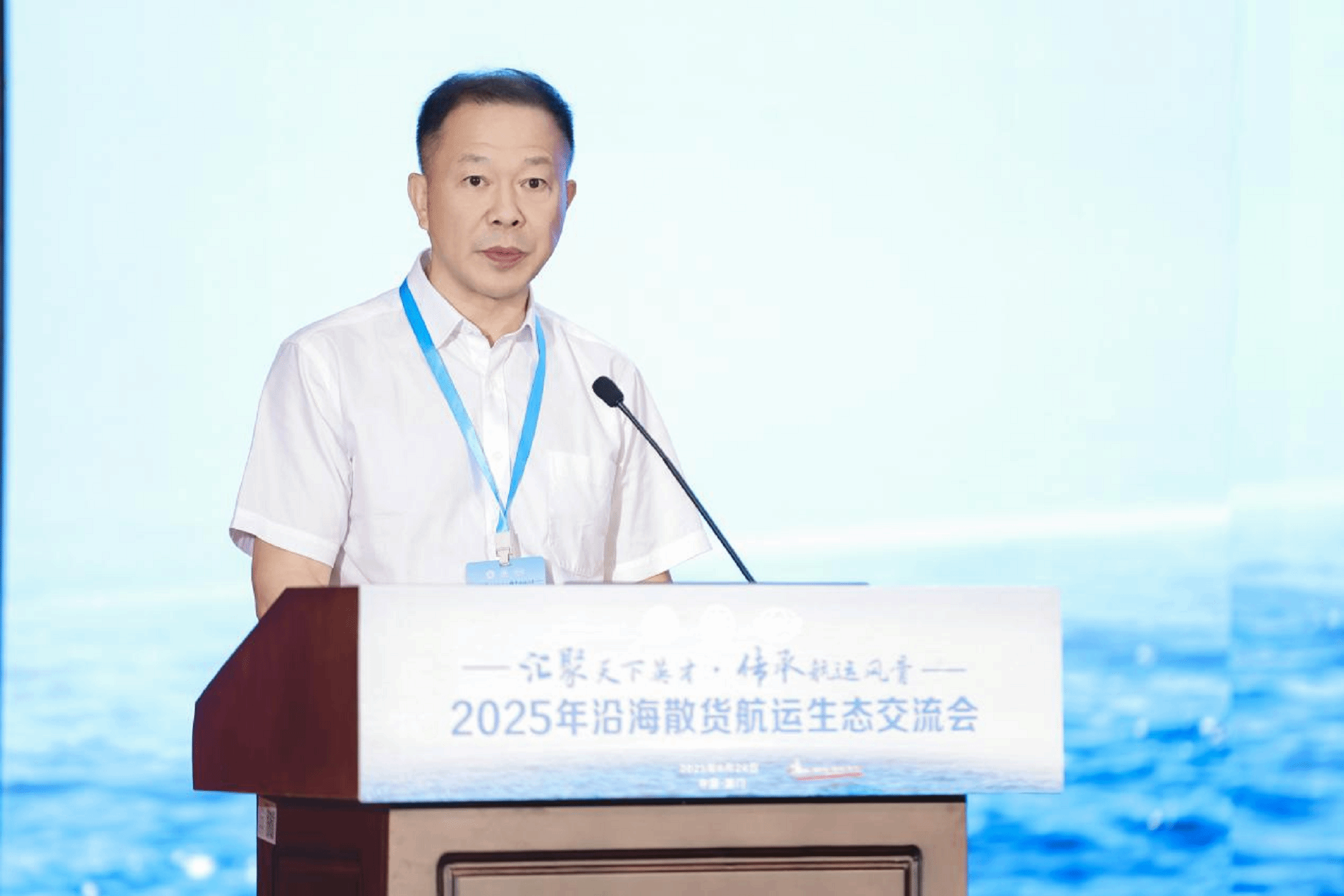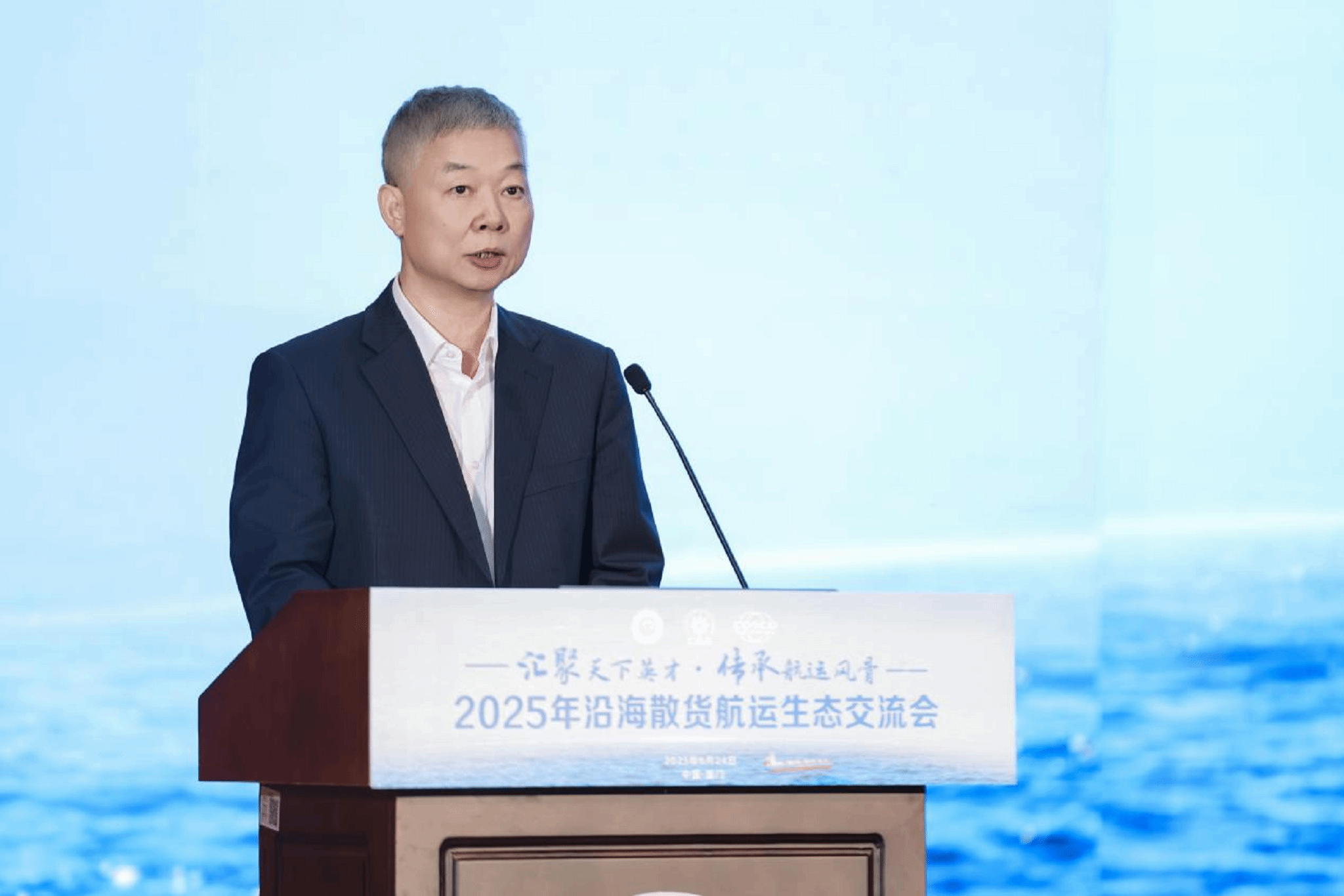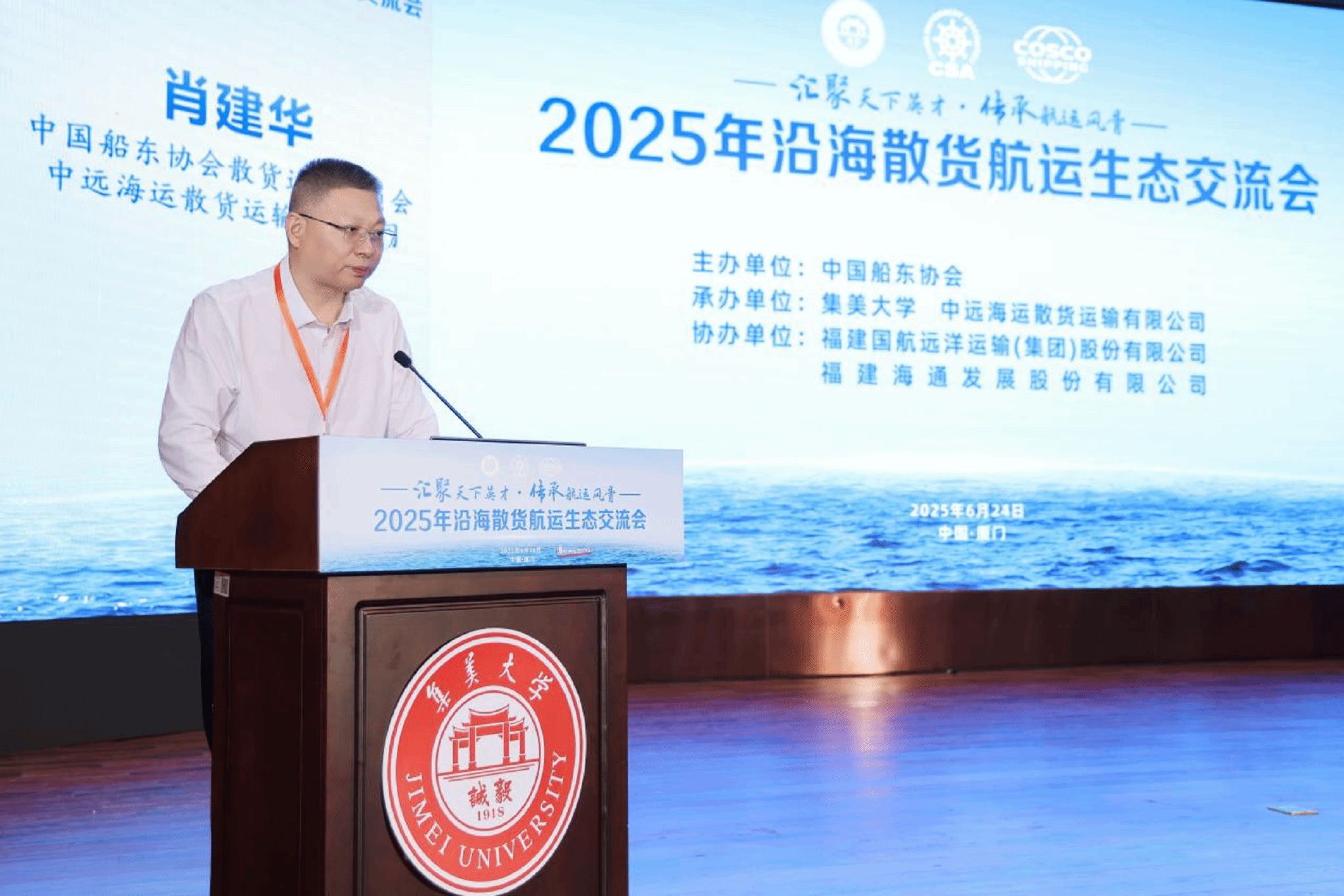 肖建华在致辞中指出,沿海散货运输是国民经济的重要部分,航运行业在全球经济复苏过程中扮演着关键角色,本次大会旨在凝聚行业智慧,传承航运精神,共谋发展新篇,锚定国家战略航向,以创新思维与前沿理念突破发展桎梏。他表示,中远海运散货运输将与各航运企业携手,共同构建绿色低碳、智能高效的现代化航运体系,共筑航运高质量、可持续发展新格局,擎画行业未来的崭新篇章。