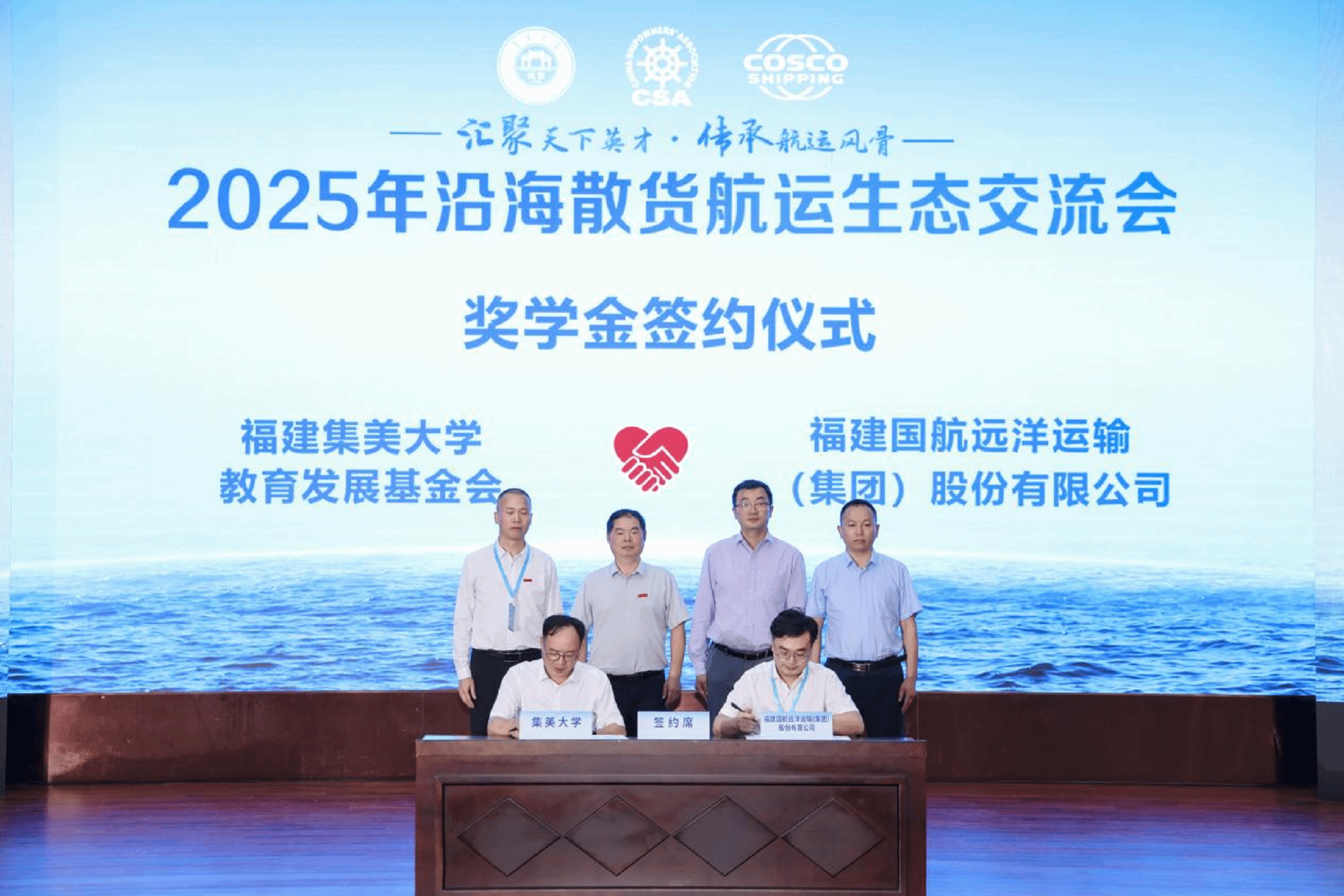 大会上,福建国航远洋运输(集团)股份有限公司与我校教育发展基金会共同签署了“集美大学国远奖学金”捐赠协议书。