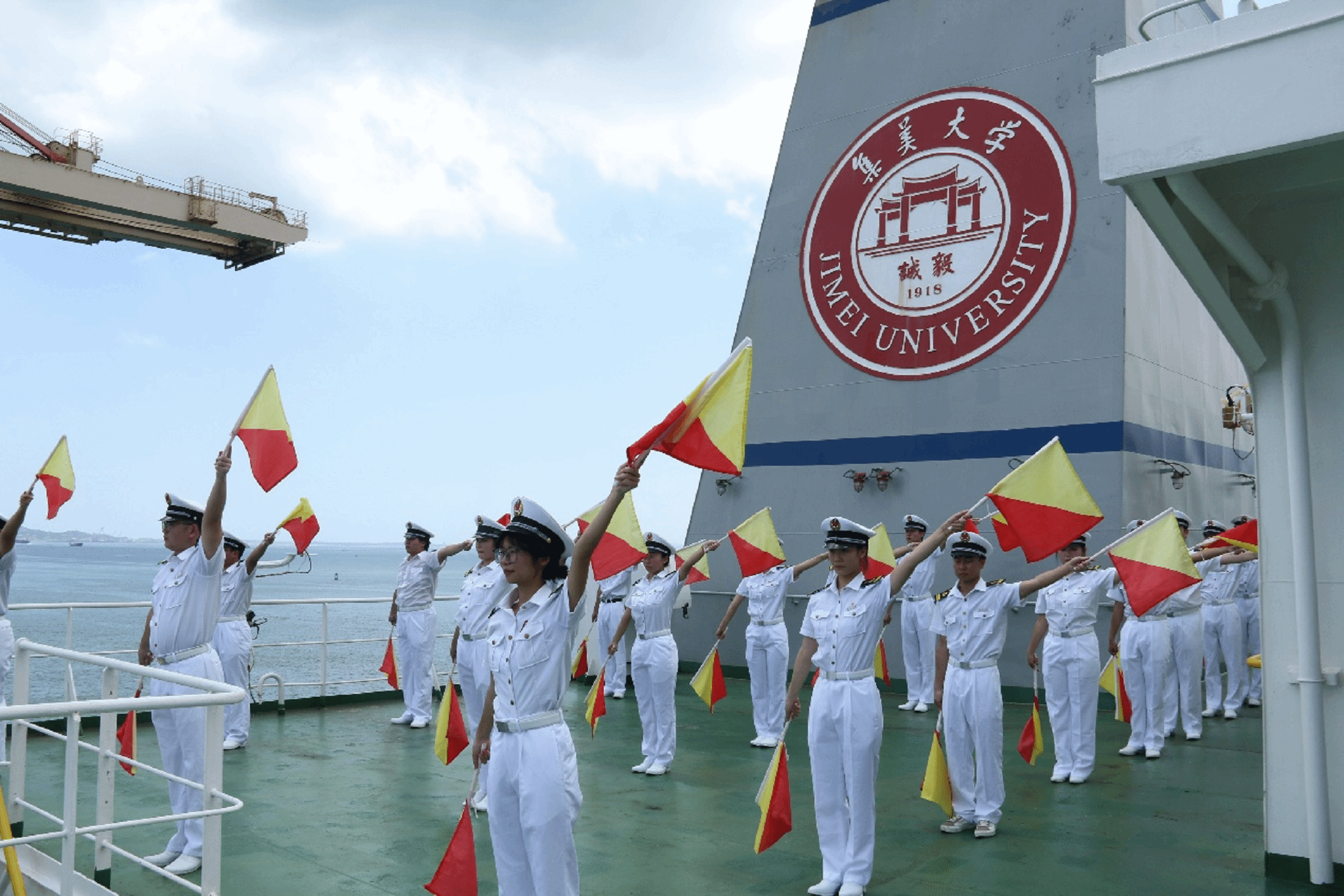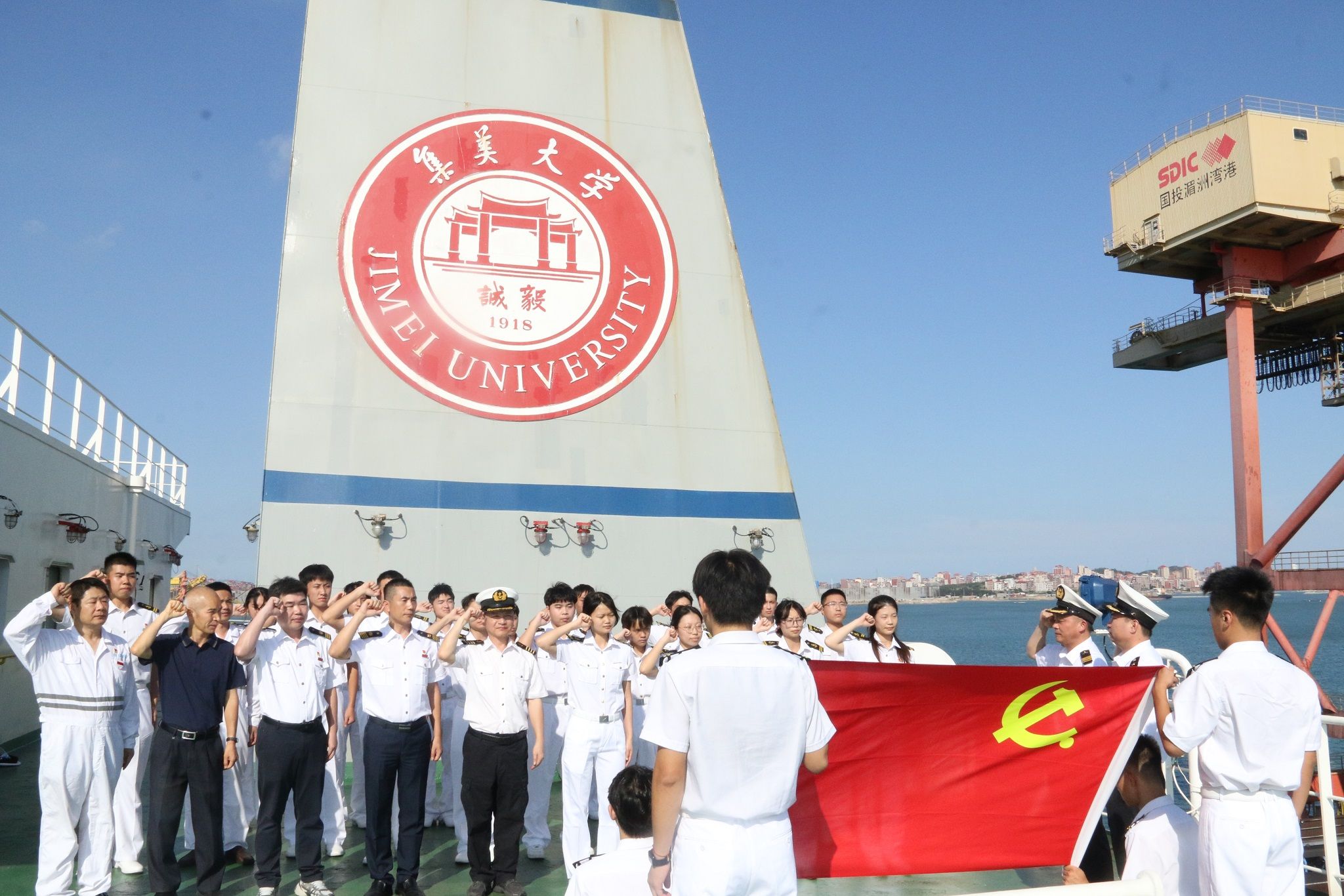 今天,集美大学近150名师生登上校船“育德“轮,以独特的方式祝福中国共产党104岁生日快乐。