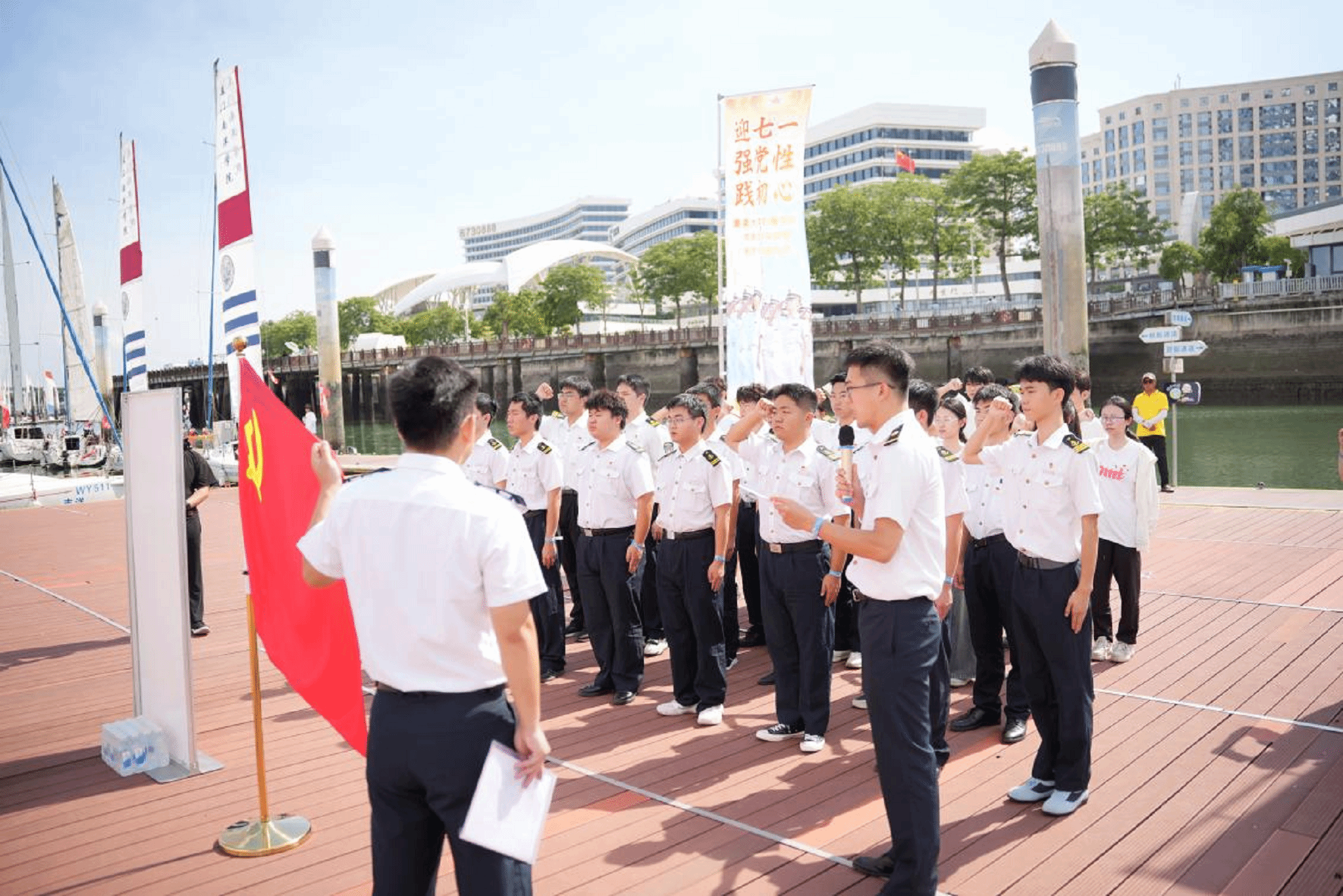活动在庄严的入党宣誓中拉开帷幕。在蔚蓝的海天之间,新党员们面向鲜红党旗庄严宣誓,铿锵誓言在海风中激荡回响。蓝良纯代表学院党委向新党员表示祝贺,勉励大家牢记初心使命,以党员标准严格要求自己,在建设海洋强国的新征程上勇当先锋。随后,师生集体体验帆船驾驶实践,专业船长结合“启航者”雕像等红色地标,生动讲述厦门海洋事业发展历程,让师生们在实践中感悟一代代航海人“向海图强”的奋斗精神。