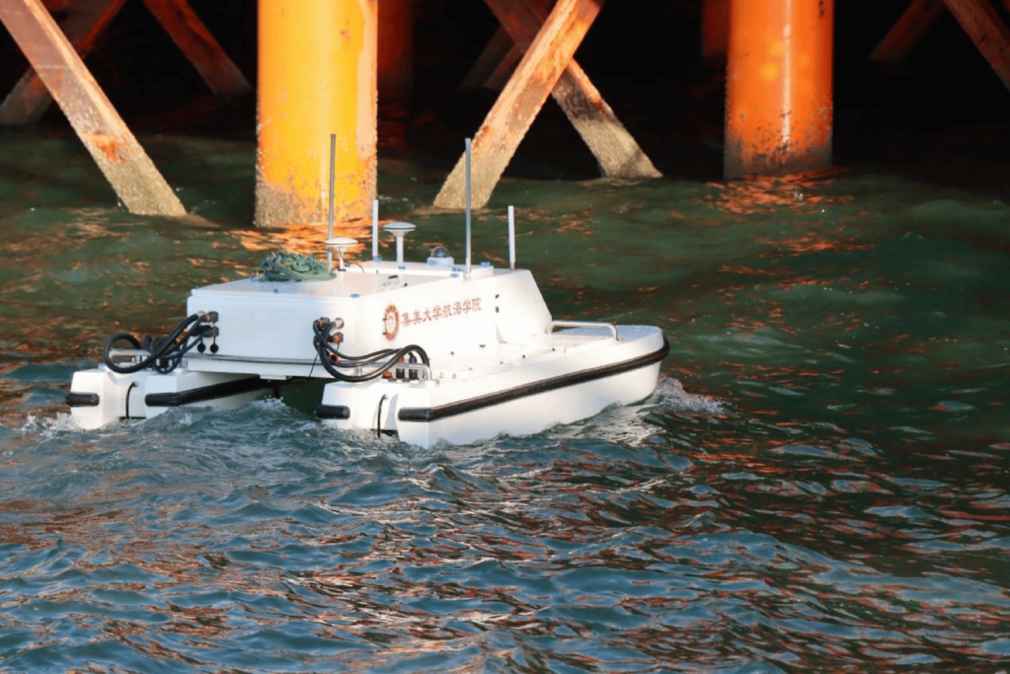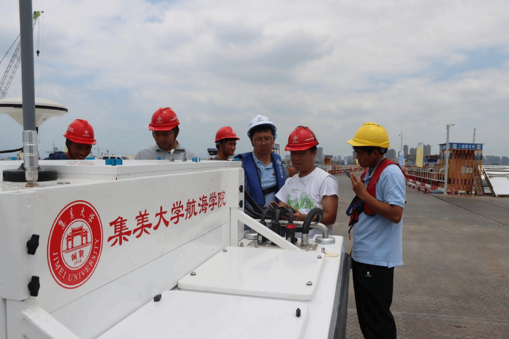 7月3日,集美大学航海学院海翼知行社会实践队,前往厦金大桥刘五店桥段A1标段海域,与中交一公局集团联合开展智能无人艇海上施工平台安全检测技术测试。本次测试聚焦重大跨海工程安全保障需求,采用无人艇对施工平台钢结构进行巡检,旨在验证无人艇智能检测技术在复杂海洋工程环境下的应用效能。