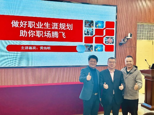 黄伟明从“当前行业发展前景”“什么样的人才受企业需要”“如何做好职业生涯规”等方面进行分享,并与师生开展互动交流,指导学生选择符合自身发展的企业,帮助学生树立正确的择业观,为学生打上“就业强心剂”。