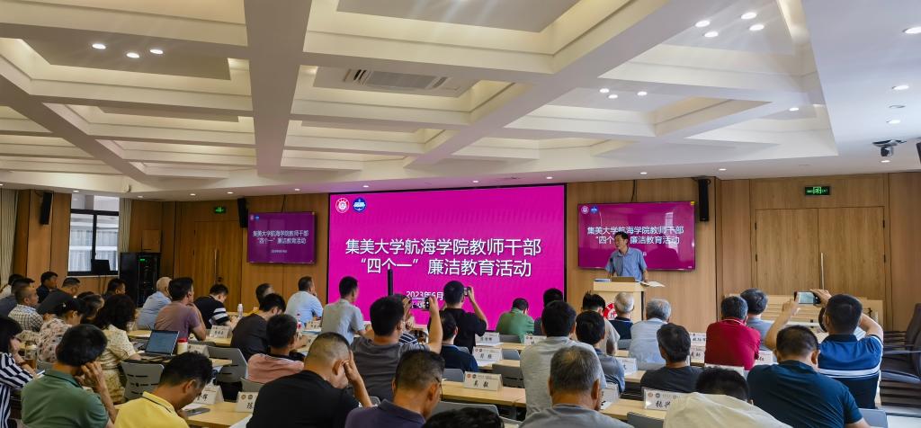 为深入开展学习贯彻习近平总书记关于教育的重要论述和党的二十大精神,全面加强师德师风建设,营造优良教风,6月14日下午,航海学院在万邦楼会议室开展教师干部“四个一”廉洁教育活动,学院全体教职工参加了教育活动。