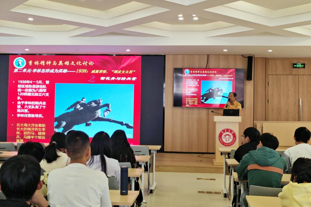 王宝国以歌曲《心爱的战马》为引,介绍了集美学校校友、女英雄李林的生平,并结合真实动人的故事,讲述了“李林怎样成为英雄”和“李林的精神文化遗产”。会后的师生互动,进一步加深了大家对李林精神的理解。