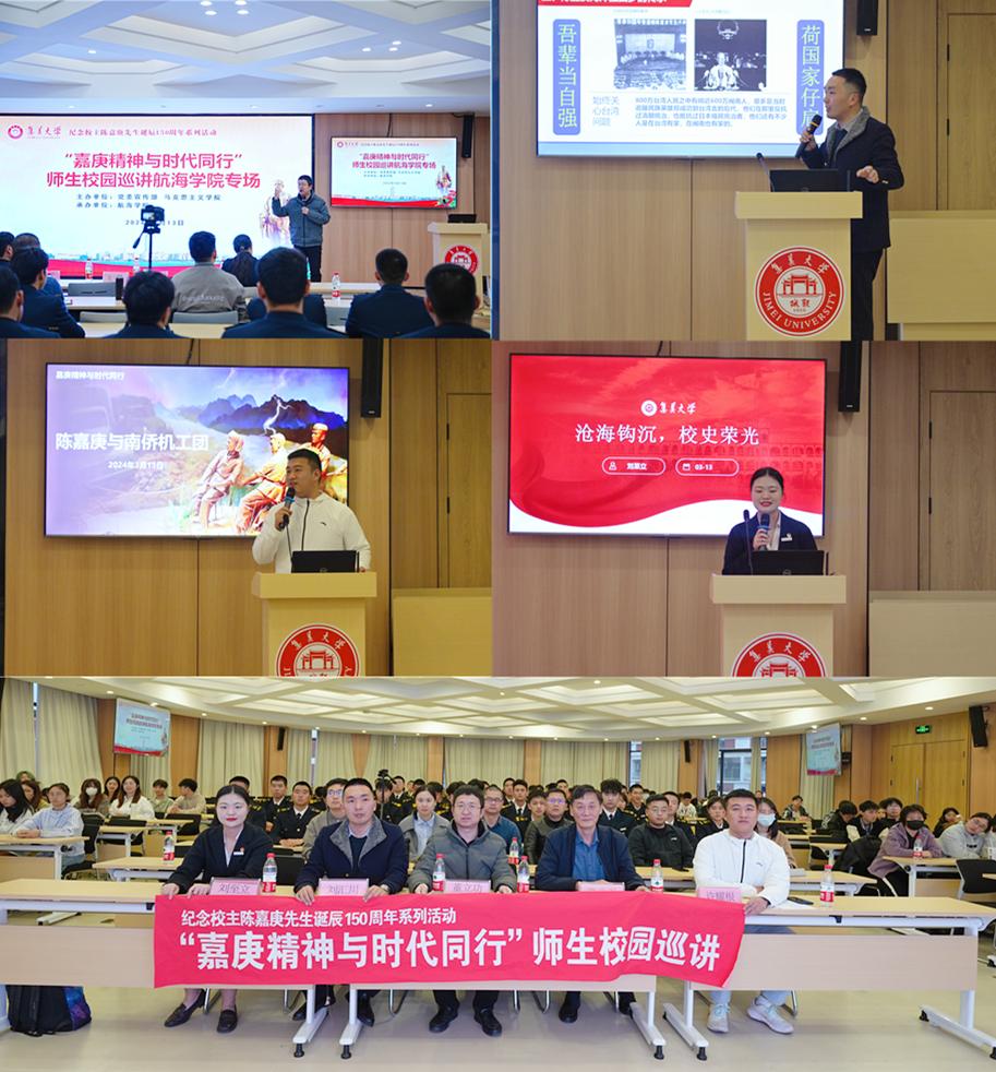 校党委宣传部副部长董立功、马克思主义学院教师刘汇川、航海学院辅导员许耀根以及校史馆志愿讲解员刘至立同学结合嘉庚先生的生平和经历,阐述了嘉庚先生对教育事业的热爱与奉献、对航海教育的初心与坚守、对学生的关爱与帮助以及对支持抗日战争所做出的努力。