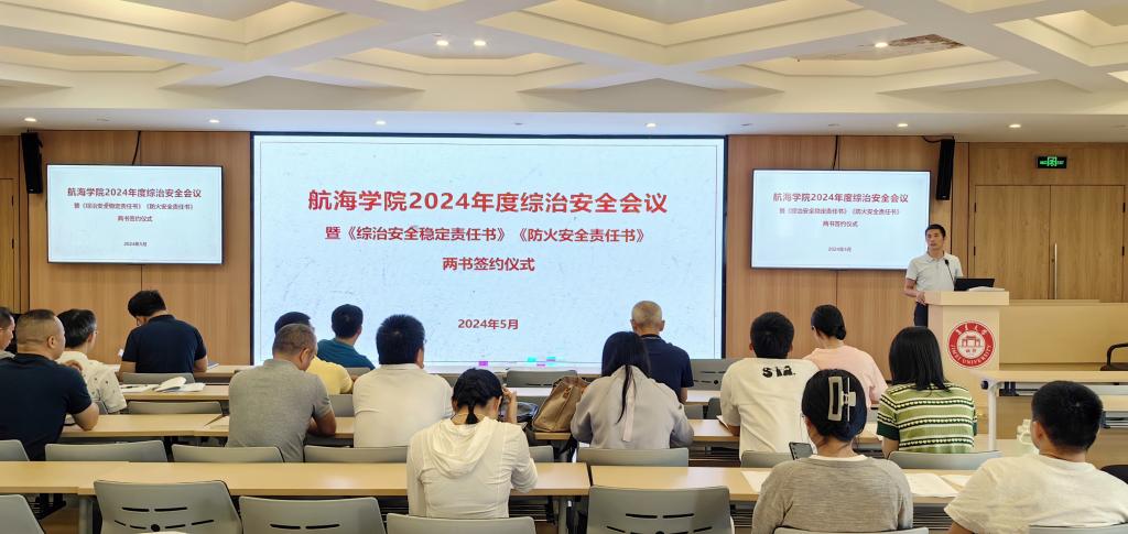 会上,学院党政负责人与参会人员签订了《2024年度航海学院安全稳定工作目标责任书》和《航海学院防火安全责任书》。