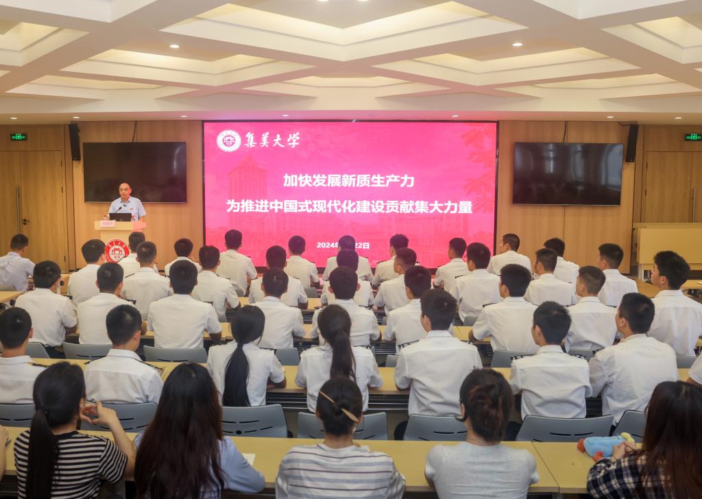 5月22日下午,校长谢潮添以“加快发展新质生产力,为推进中国式现代化建设贡献集大力量”为主题,为我院近200名学生代表上了一堂思政公开课。