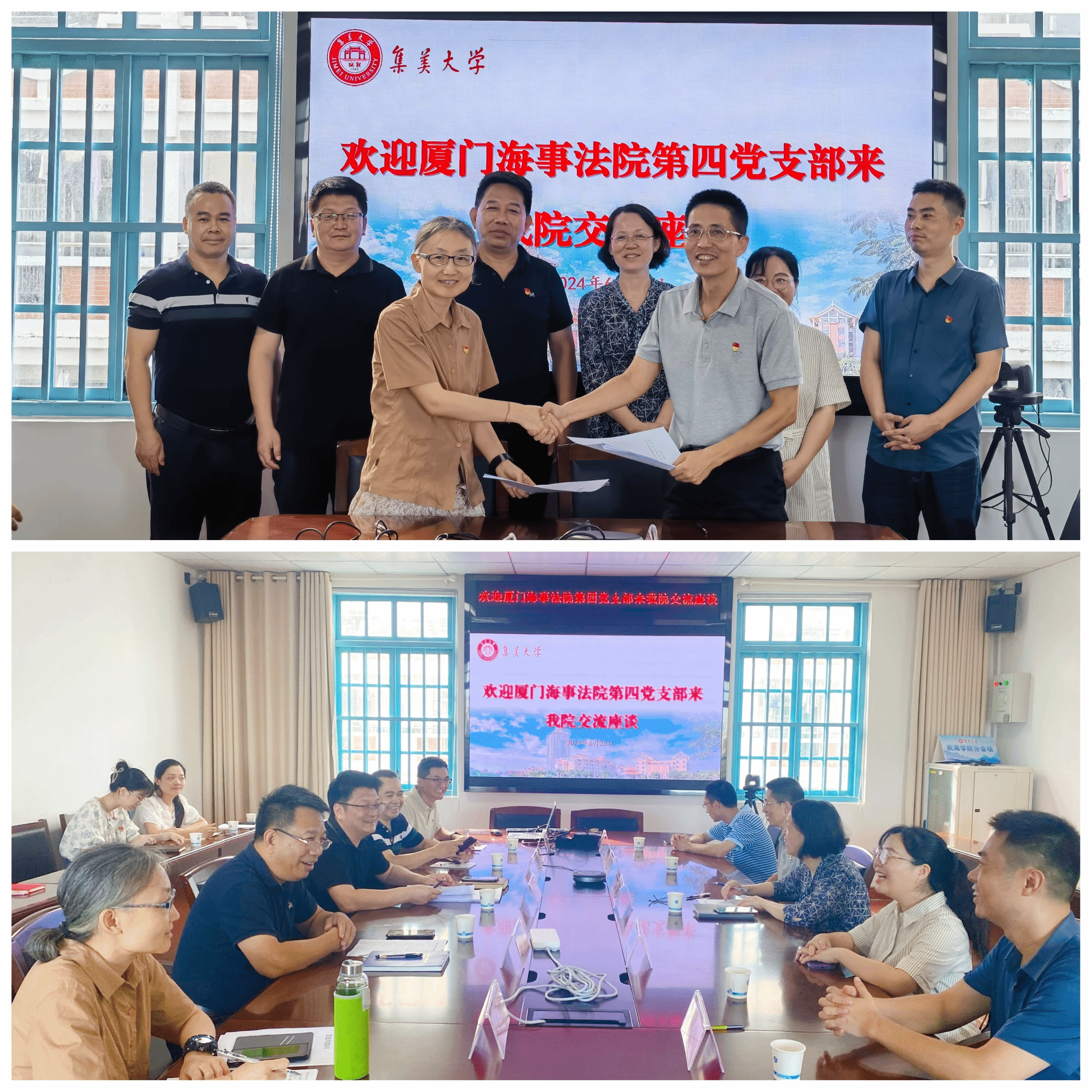 6月26日下午,我院交通运输教研室党支部与厦门海事法院第四党支部开展共建活动。厦门海事法院政治部主任吴玲、 研究室主任林强、研究室副主任朱小菁等,我院副院长初良勇、副院长曹宝根、交通运输专业负责人黄鹏飞、交通运输教研室党支部书记王文及相关人员参加座谈会。