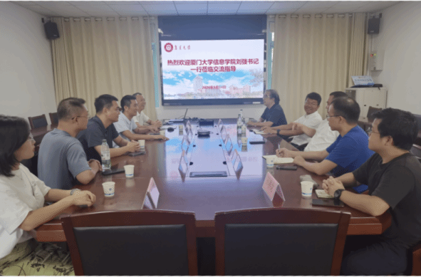 9月14日,厦门大学信息学院党委书记刘弢、副院长袁飞、龚树丰一行到我院调研交流。校科研处处长蔡国榕、院党委书记王小军、院长杨神化等参加了交流活动。