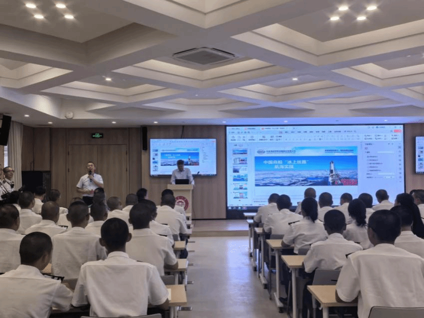 翁继强以《中国商船“冰上丝路”的航海实践》为题,从“冰上丝路”历程回顾、“冰上丝路”航海实践、“冰上丝路”风险挑战等方面为在场师生全面介绍南北极航线情况以及企业实践动态,阐述了“冰上丝路”的深远现实意义,为深刻理解交通强国等国家战略提供了不同的视角,为新时代航海学子珍惜时代机遇、积极服务国家战略进行了有益引导。