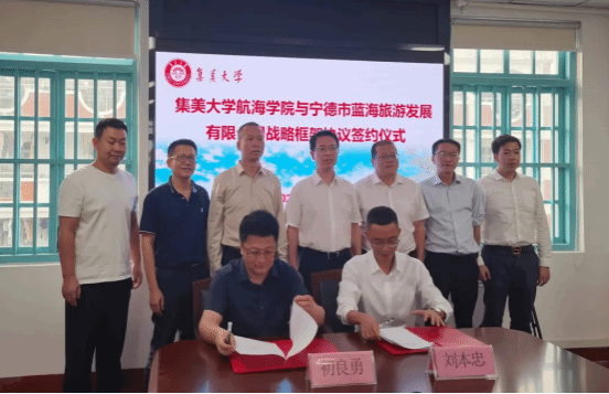共建仪式上,杨神化介绍学院创办历史、师资力量、科研平台建设情况等,他希望能与宁德市旅发集团在海洋旅游领域实现资源共享、优势互补,打造校企互动融合的新路径。姚正水对集美大学航海学院在教学理念与技术科研领域取得的成就表示高度赞赏,他希望通过建立战略合作关系,在人才培养、技术创新、科学研究等方面融合发展新质生产力,实现校企共赢。航海学院、宁德市旅发集团分别派代表签订协议。双方将在人才培养、技术创新、科学研究、项目建设等相关业务方面寻求发展的共同点,开展全面广泛的深度合作,共同实现海上旅游和院校合作高质量发展路径。