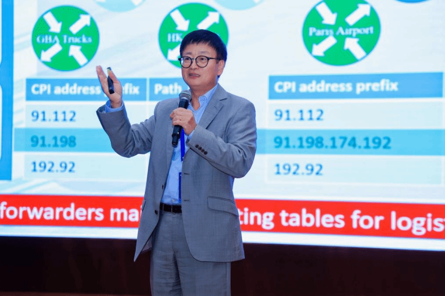 香港理工大学先进制造研究院院长黄国全做了题为《元联网、互联网、物联网和物通网融合的新一代跨境物流》的报告。
