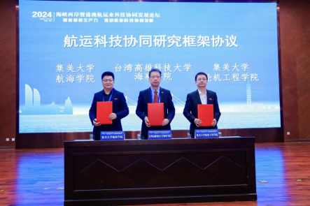 在论坛开幕式上,集美大学航海学院、轮机工程学院与台湾高雄科技大学海事学院签署了航运科技协同研究框架协议。旨在为在校航海轮机类师生提供更多实践、教学和交流机会,在海事人才培养、科学研究、社会服务等方面加强合作,实现优势互补、共同发展。