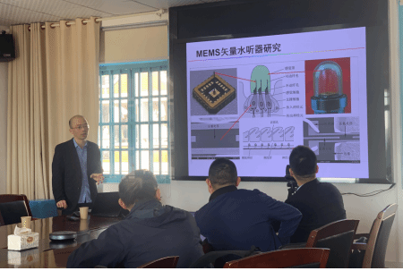 本次学术交流讲座邀请到中北大学王任鑫教授,王任鑫教授以“MEMS水听器及阵列技术”为主题,做出了精彩的学术报告。