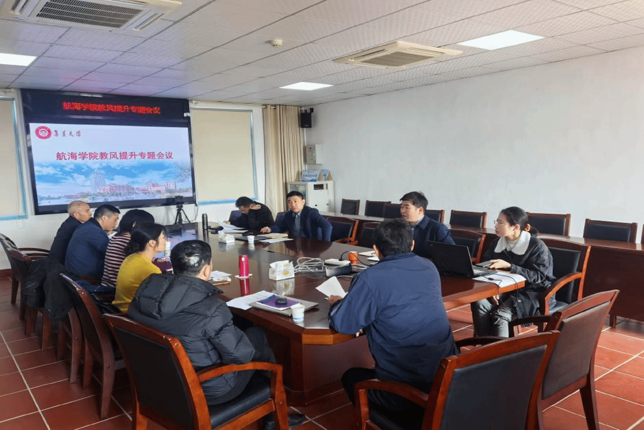 我校将于2025年3月-4月接受教育部新一轮本科教育教学审核评估,为切实提升我院教风学风,高质量迎接本科教育教学审核,我院制定了《航海学院教风学风提升专项行动方案》。2月19日,我院召开教风学风提升专题会议,院长杨神化、副院长徐良坤、学院督导组、各教研室主任、水上训练中心和实验中心主任等参加会议。